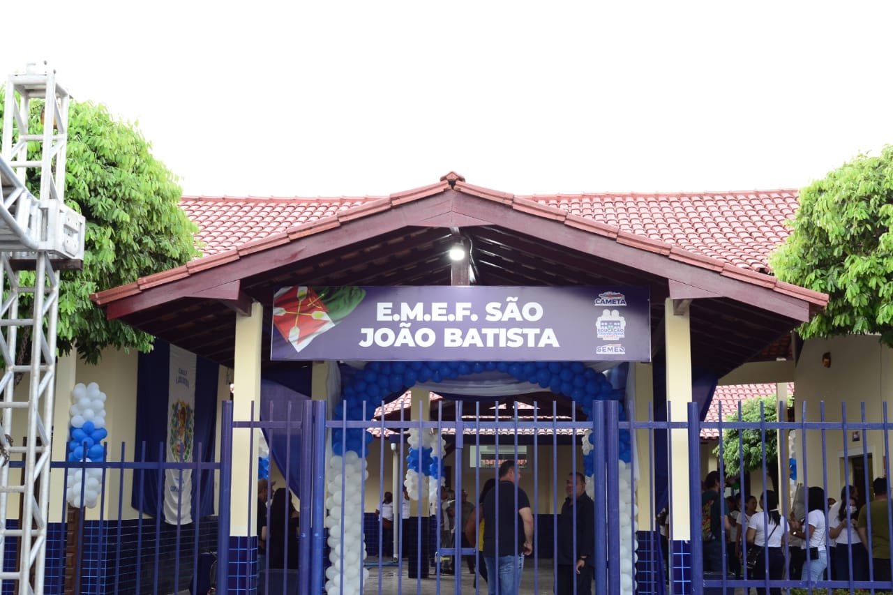 Na noite desta segunda-feira (01), a Prefeitura de Cametá realizou a reinauguração da EMEF São João Batista. A instituição foi inaugurada em 1983 e seu nome homenageia o santo padroeiro dos cametaenses. Totalmente climatizada (32 centrais), Sala do AEE equipada, Laboratório de Informática e Biblioteca. Um mega investimento no valor de R$ 1 milhão que objetiva dar mais qualidade à educação e bem estar à toda comunidade escolar da maior escola do município de Cametá.