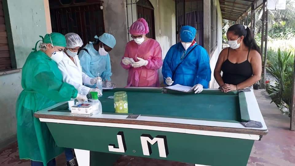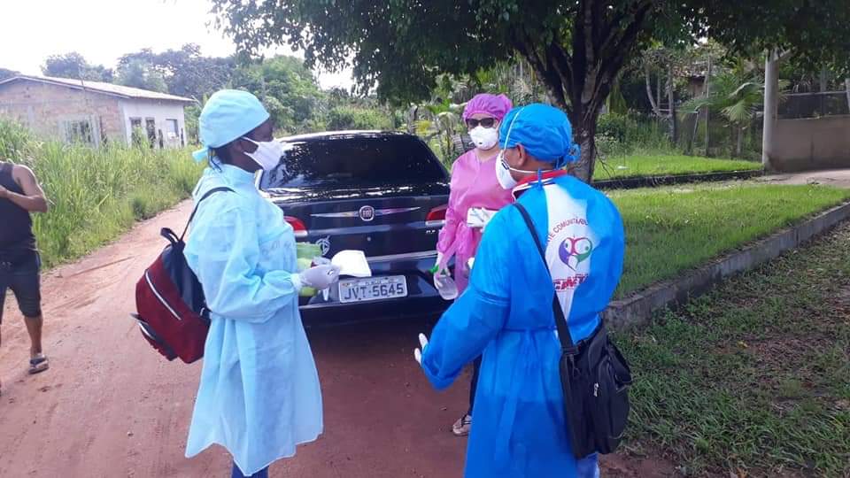 Um dos distritos de Cametá mais atingidos pela COVID-19 é o Carapajó, pensando em dar atenção necessária aos pacientes que estão sendo tratados em casa e aos seus familiares, uma equipe multiprofissional da UBS 24HRS de Carapajó, composta por Médico, duas enfermeiras, téc. Enfermagem, ACS, Apoio e Segurança estiveram realizando visitas domiciliares pelo distrito.