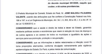 Decreto Nº 051/2020: Dispõe sobre os atos, medidas e recomendações do governo municipal para preparação,…